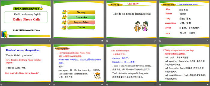 关键词:冀教版七年级下册英语PPT课件免费下载,Online Phone CallsPPT下载,I Love Learning EnglishPPT下载,.PPT格式;