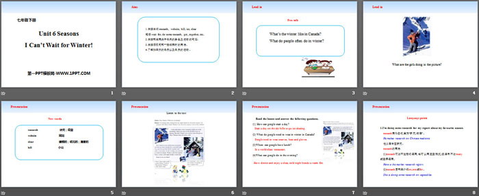 关键词:冀教版七年级下册英语PPT课件免费下载,I Can't Wait for Winter!PPT下载,SeasonsPPT下载,.PPT格式;