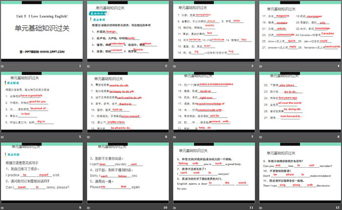 关键词:冀教版七年级下册英语PPT课件免费下载,单元基础知识过关PPT下载,I Love Learning EnglishPPT下载,.PPT格式;