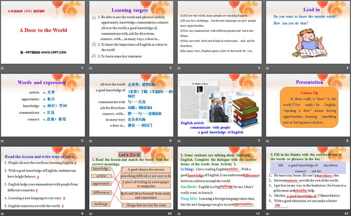 A Door to the WorldPPT,第二部分内容:Words and expression