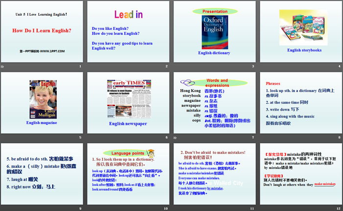 关键词:冀教版七年级下册英语PPT课件免费下载,How do I learn English?PPT下载,I Love Learning EnglishPPT下载,.PPT格式;