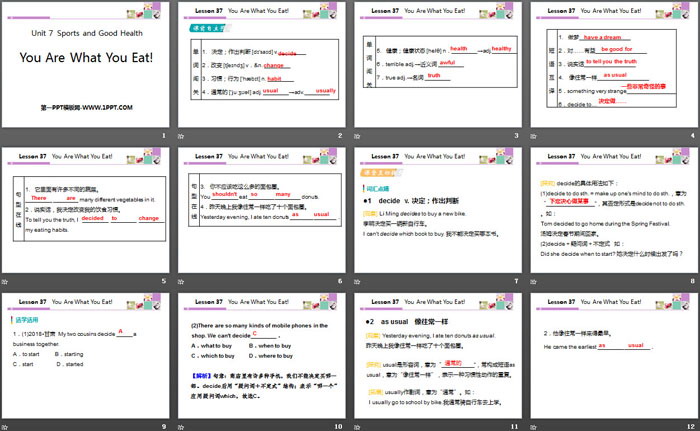 关键词:冀教版七年级下册英语PPT课件免费下载,You Are What You Eat!PPT下载,Sports and Good HealthPPT下载,.PPT格式;