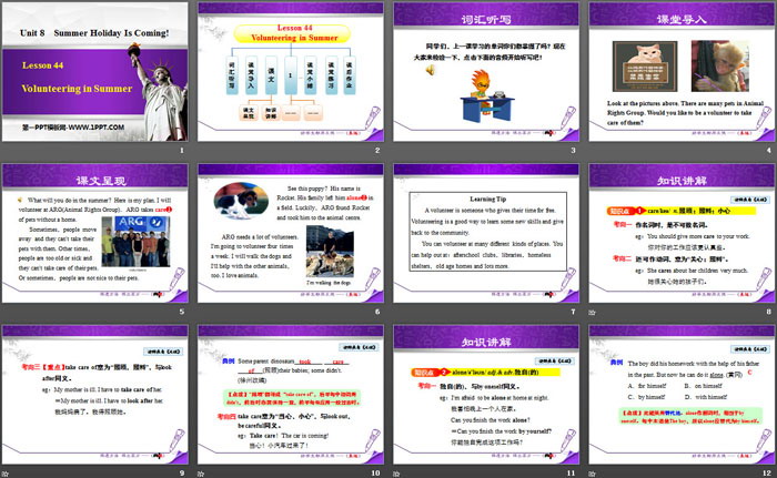 关键词:冀教版七年级下册英语PPT课件免费下载,Volunteering in SummerPPT下载,Summer Holiday Is Coming!PPT下载,.PPT格式;