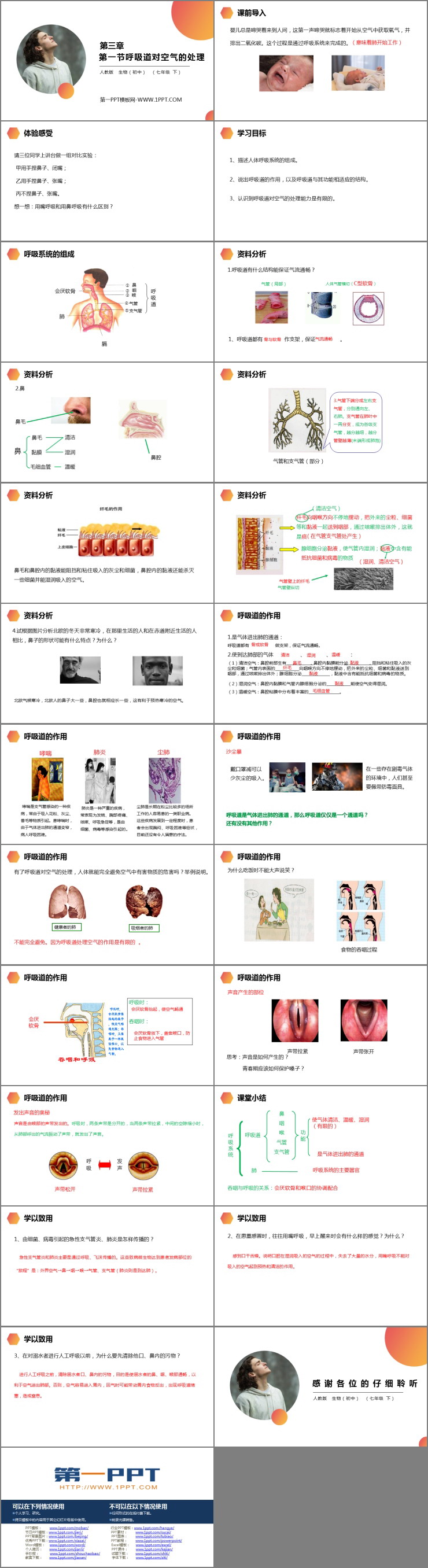 关键词:呼吸道对空气的处理PPT课件免费下载,人体的呼吸PPT下载,.PPT格式;
