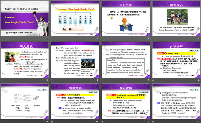 关键词:冀教版七年级下册英语PPT课件免费下载,Were People Healthy Then?PPT下载,Sports and Good HealthPPT下载,.PPT格式;
