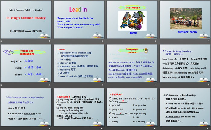 Li Ming's Summer HolidayPPT,第二部分内容:Language points