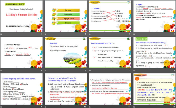 关键词:冀教版七年级下册英语PPT课件免费下载,Li Ming's Summer HolidayPPT下载,Summer Holiday Is Coming!PPT下载,.PPT格式;
