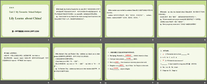 Lily Learns about China!PPT,第二部分内容:课堂练习