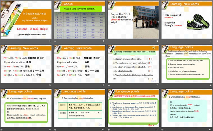 关键词:冀教版八年级上册英语PPT课件免费下载,E-mail Helps!PPT下载,My Favourite School SubjectPPT下载,.PPT格式;