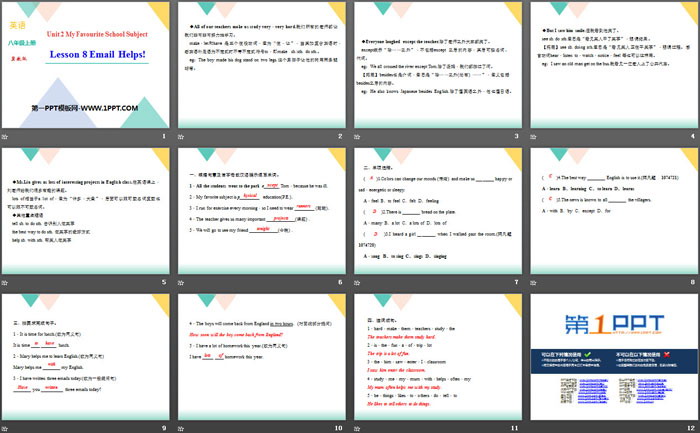关键词:冀教版八年级上册英语PPT课件免费下载,E-mail Helps!PPT下载,My Favourite School SubjectPPT下载,.PPT格式;