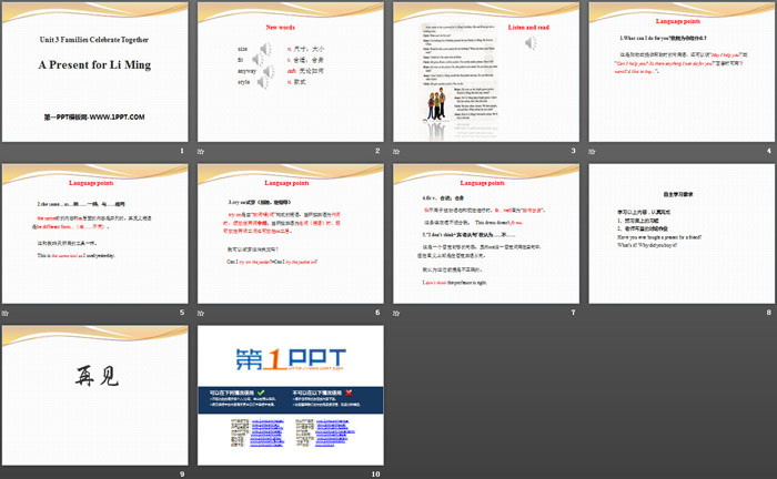 《A Present for Li Ming》Families Celebrate Together PPT免费课件