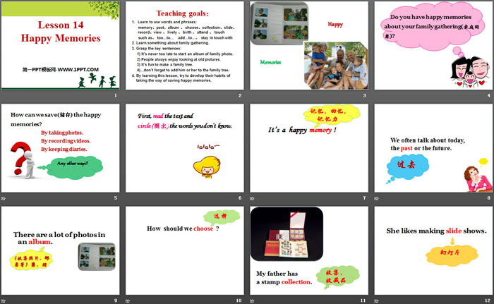 memory、past、album、choose、collection、slide、record、view、lively、 birth、attend、touch
