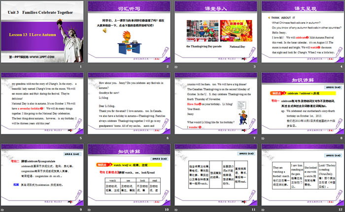 关键词:冀教版八年级上册英语PPT课件免费下载,I Love AutumnPPT下载,Families Celebrate TogetherPPT下载,.PPT格式;