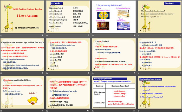 《I Love Autumn》Families Celebrate Together PPT课件