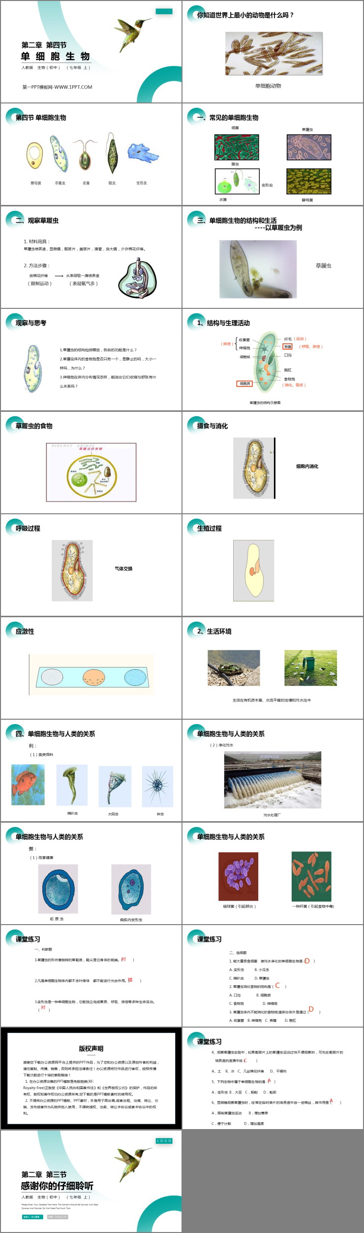 《单细胞生物》PPT精品课件包含知识解析、课堂小结、课堂练习三部分。