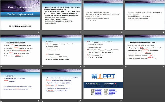 关键词:冀教版八年级上册英语PPT课件免费下载,The Best NeighbourhoodPPT下载,My NeighbourhoodPPT下载,.PPT格式;