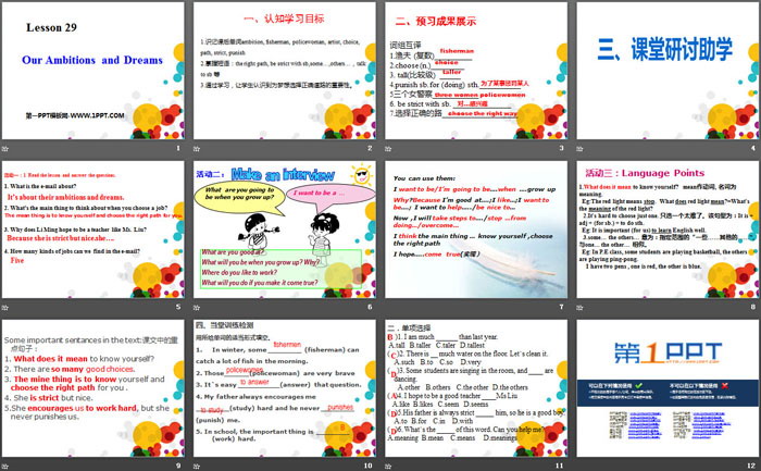 Our Ambitions and DreamsPPT,第三部分内容:课堂研讨助学