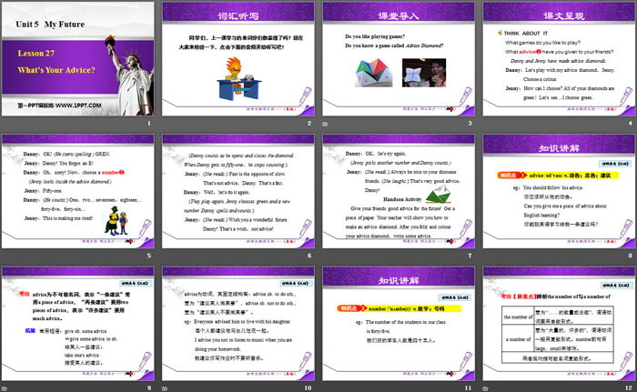 关键词:冀教版八年级上册英语PPT课件免费下载,What's Your Advice?PPT下载,My FuturePPT下载,.PPT格式;