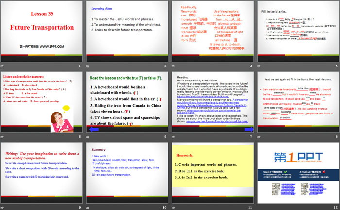 关键词:冀教版八年级上册英语PPT课件免费下载,Future TransportationPPT下载,Go with Transportation!PPT下载,.PPT格式;