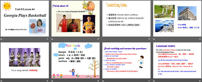 Georgia Plays BasketballPPT,第二部分内容:New Words