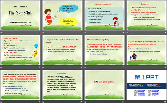 关键词:冀教版八年级上册英语PPT课件免费下载,The New ClubPPT下载,Enjoy Your HobbyPPT下载,.PPT格式;