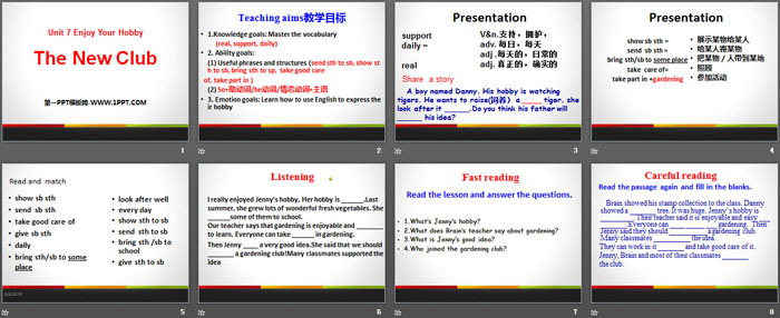 关键词:冀教版八年级上册英语PPT课件免费下载,The New ClubPPT下载,Enjoy Your HobbyPPT下载,.PPT格式;