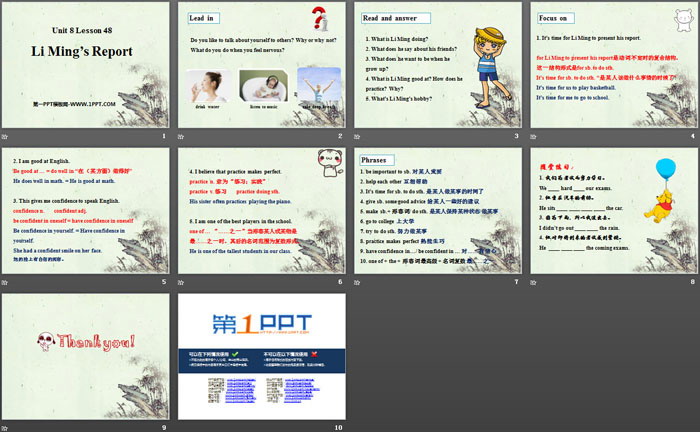 Li Ming's Report!PPT,第五部分内容:随堂练习:
