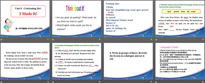 关键词:冀教版八年级上册英语PPT课件免费下载,I Made It!PPT下载,Celebrating Me!PPT下载,.PPT格式;