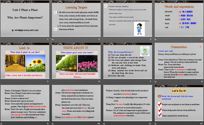 关键词:冀教版八年级下册英语PPT课件免费下载,Why Are Plants Important?PPT下载,Plant a PlantPPT下载,.PPT格式;