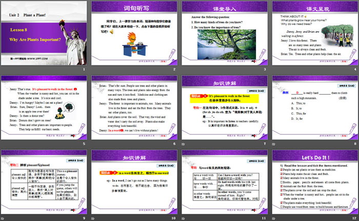 关键词:冀教版八年级下册英语PPT课件免费下载,Why Are Plants Important?PPT下载,Plant a PlantPPT下载,.PPT格式;