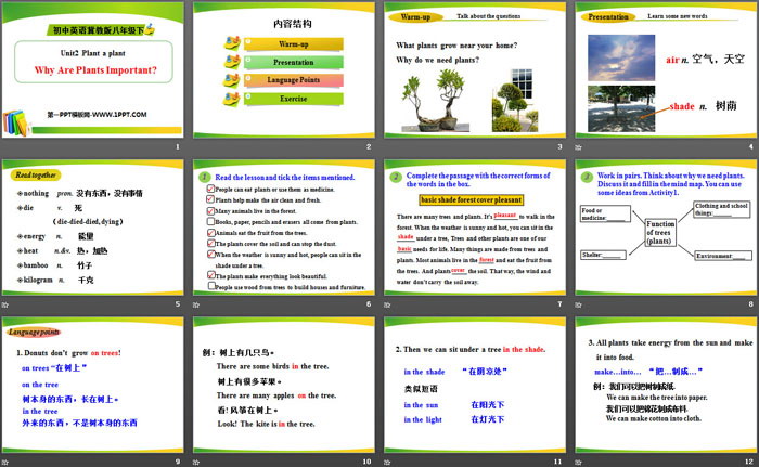 关键词:冀教版八年级下册英语PPT课件免费下载,Why Are Plants Important?PPT下载,Plant a PlantPPT下载,.PPT格式;