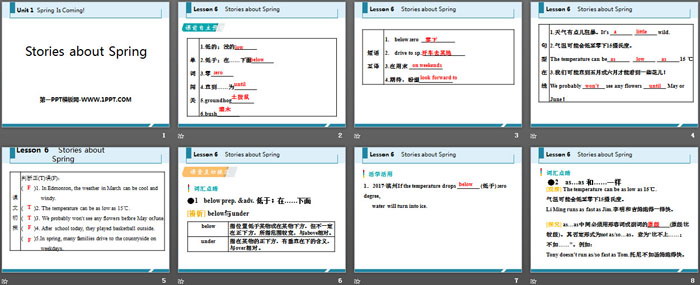 关键词:冀教版八年级下册英语PPT课件免费下载,Stories about SpringPPT下载,Spring Is ComingPPT下载,.PPT格式;