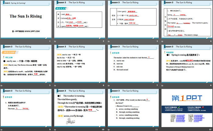 关键词:冀教版八年级下册英语PPT课件免费下载,The Sun Is RisingPPT下载,Spring Is ComingPPT下载,.PPT格式;