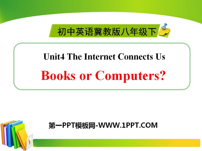 关键词:冀教版八年级下册英语PPT课件免费下载,Books or Computers?PPT下载,The Internet Connects UsPPT下载,.PPT格式;