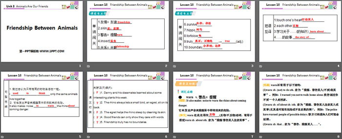 关键词:冀教版八年级下册英语PPT课件免费下载,Friendship Between AnimalsPPT下载,Animals Are Our FriendsPPT下载,.PPT格式;