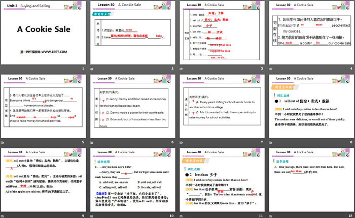 关键词:冀教版八年级下册英语PPT课件免费下载,A Cookie SalePPT下载,Buying and SellingPPT下载,.PPT格式;