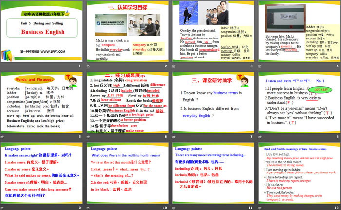 关键词:冀教版八年级下册英语PPT课件免费下载,Business EnglishPPT下载,Buying and SellingPPT下载,.PPT格式;