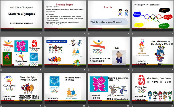 关键词:冀教版八年级下册英语PPT课件免费下载,Modern OlympicsPPT下载,Be a Champion!PPT下载,.PPT格式;