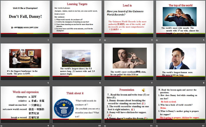 《Don't Fall,Danny!》Be a Champion! PPT课件下载