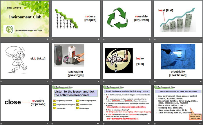 关键词:冀教版八年级下册英语PPT课件免费下载,Environment ClubsPPT下载,Save Our World!PPT下载,.PPT格式;