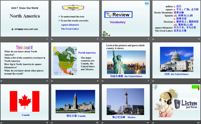 North AmericaPPT,第三部分内容:listen and answer