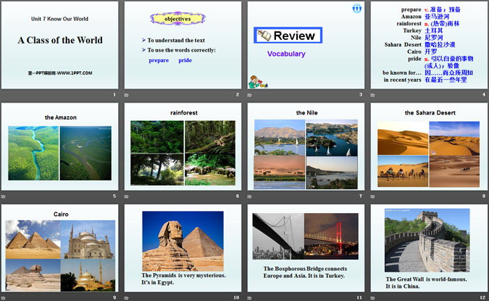 关键词:冀教版八年级下册英语PPT课件免费下载,A Class of the WorldPPT下载,Know Our WorldPPT下载,.PPT格式;