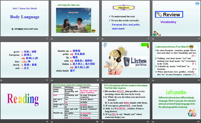 关键词:冀教版八年级下册英语PPT课件免费下载,Body LanguagePPT下载,Know Our WorldPPT下载,.PPT格式;