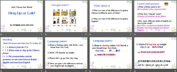 Ring Up or Call?PPT,第二部分内容:Language points