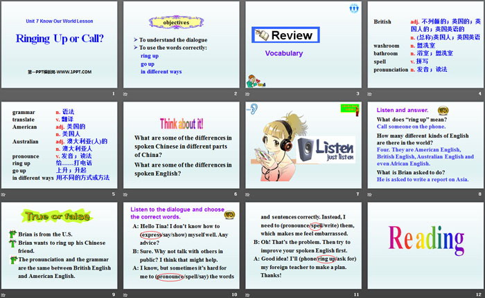 Ring Up or Call?PPT,第四部分内容:Reading