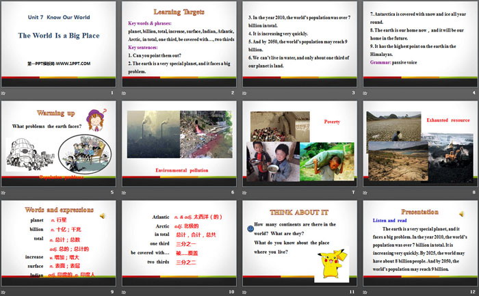 关键词:冀教版八年级下册英语PPT课件免费下载,The World Is a Big PlacePPT下载,Know Our WorldPPT下载,.PPT格式;
