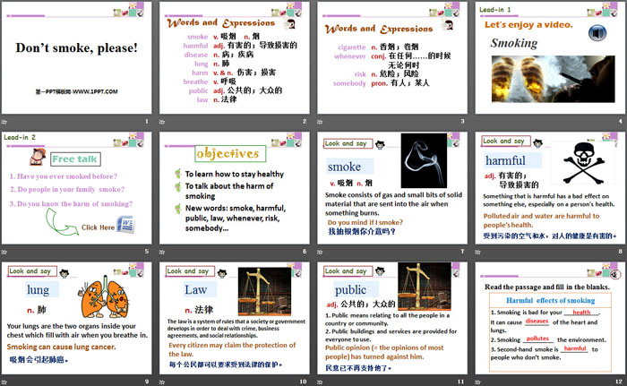 关键词:冀教版九年级上册英语PPT课件免费下载,Don't Smoke,Please!PPT下载,Stay healthyPPT下载,.PPT格式;