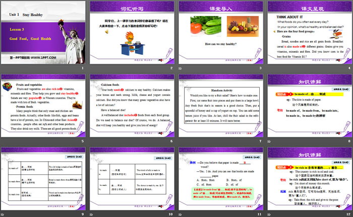 关键词:冀教版九年级上册英语PPT课件免费下载,Good Food,Good HealthPPT下载,Stay healthyPPT下载,.PPT格式;