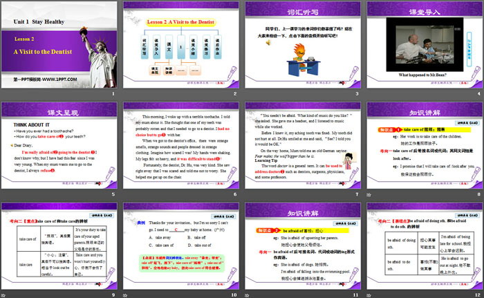 关键词:冀教版九年级上册英语PPT课件免费下载,A Visit to the DentistPPT下载,Stay healthyPPT下载,.PPT格式;