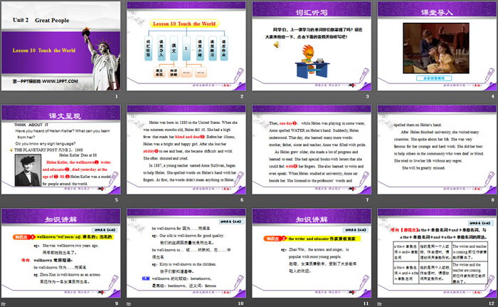 关键词:冀教版九年级上册英语PPT课件免费下载,Touch the WorldPPT下载,Great PeoplePPT下载,.PPT格式;